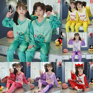 Bộ Đồ Ngủ Vải Lụa Satin Tay Dài Cổ Chữ V Thời Trang Hàn Quốc Cho Bé