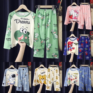 Bộ Đồ Ngủ Tay Dài Chất Lụa In Họa Tiết Dễ Thương Cho Bé