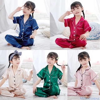Pijama Cho Trẻ Em Ngắn Tay Lụa Satin Bộ đồ Ngủ Bé Trai Bé Gái