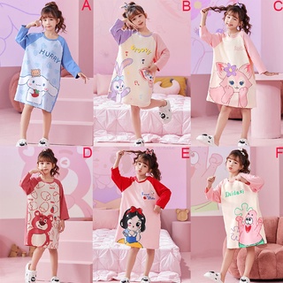 Đầm Ngủ Tay Dài Chất Cotton In Họa Tiết Hoạt Hình Phong Cách Hàn Quốc Xinh Xắn Cho Bé Gái