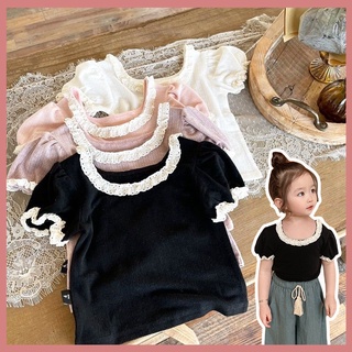 Áo Thun Cotton Tay Ngắn Cổ Ren Thời Trang Mùa Hè Dành Cho Bé Gái