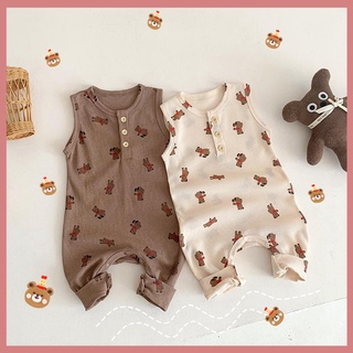Bộ Áo Liền Quần Không Tay Chất Liệu Cotton In Hình Gấu Dễ Thương Dành Cho Bé Trai Gái