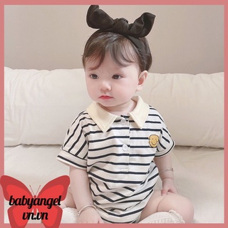 Bộ Áo Liền Quần Mùa Hè Tay Ngắn In Họa Tiết Kẻ Sọc Và Mặt Cười Dễ Thương Bằng Cotton 2022 Cho Bé Sơ Sinh