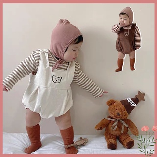 Bộ Áo Liền Quần Tay Dài Thêu Hình Chú Gấu + Quần Kẻ Sọc Thời Trang Mùa Xuân Dành Cho Bé Trai/Bé Gái