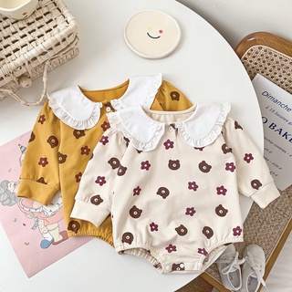 Bộ Áo Liền Quần Tay Dài In Hình Hoa Và Gấu Dễ Thương Cho Bé Gái