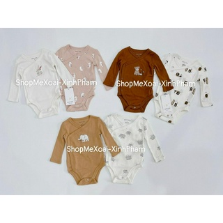Body chip Vạt chéo Organic cotton dài tay hiệu Petit...Lem xuất xịn hàng cao cấp Newborn,3M,6M,9M,12M