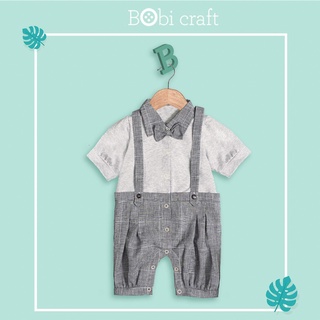 Quần áo trẻ em Bobicraft - Bộ đồ liền thân bodysuit ROMPER QUẦN YẾM BÉ TRAI CARO XÁM - Cotton hữu cơ organic an toàn