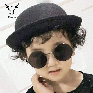 Kính râm trẻ em phong cách punk gọng tròn nhỏ, kính râm hip-hop kim loại, thấu kính hoàng tử cổ điển