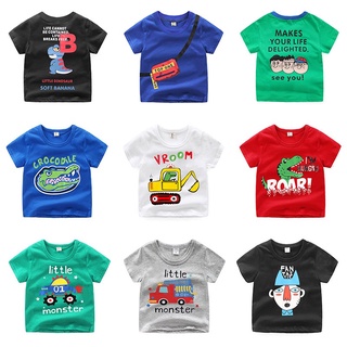 Áo Thun Cotton Tay Ngắn In Hình Khủng Long Hoạt Hình Đáng Yêu Dành Cho Bé Trai