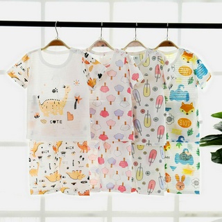 Set Đồ Ngủ 2 Món Gồm Áo Tay Cộc In Hoạt Hình + Quần Cotton Thoáng Khí Cho Bé Sơ Sinh