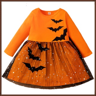 Đầm Lưới Tay Dài Phồng Cổ Tròn In Họa Tiết Bí Ngô / Dơi Mềm Mại Thời Trang Cho Nữ