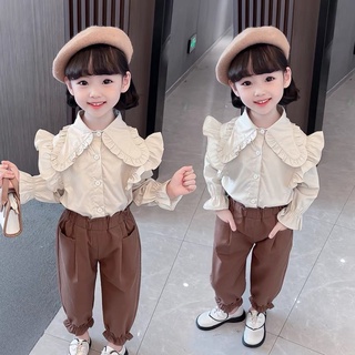 Set sơ mi bèo quần kaki túi thật cho bé gái