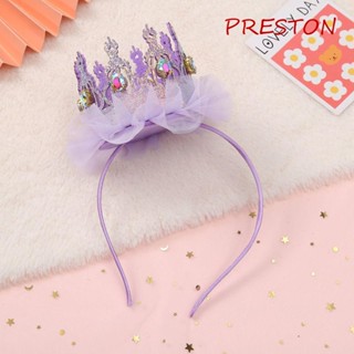 Băng Đô Cài Tóc Hình Vương Miện Chất Liệu Da Phối Lưới Đính Đá Xinh Xắn Cho Bé Gái