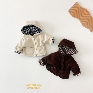 Áo Khoác Liền Mũ Nhung tăm dày dặn cho bé mặc được 2 mặt phong cách Hàn Quốc