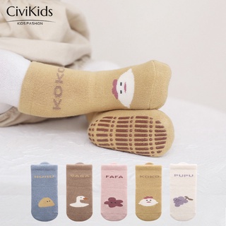 Set 5 Đôi Vớ Cotton Màu Trơn Họa Tiết Hoạt Hình Cho Bé 1-3 - 5-8 Tuổi 0079