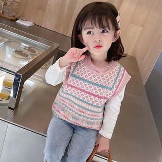 Áo Sweater Dệt Kim Sát Nách Kiểu Hàn Quốc Thời Trang Thu Đông Cho Bé Gái