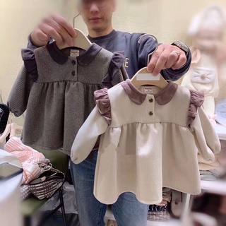 Đầm Tay Dài Cổ Búp Bê Phong Cách Hàn Quốc Thời Trang Xuân Thu 2022 Cho Bé Gái 0-4 Tuổi