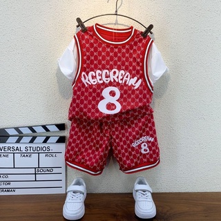 Bộ Đồ Thể Thao Bóng Rổ Ngắn Tay Phối Lưới Thời Trang Mùa Hè Dành Cho Bé Trai