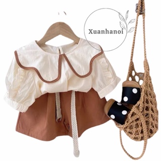 Set Bộ viền lượn bé gái Đồ bộ quần áo cho bé gái áo trắng quần short cam XHN1028