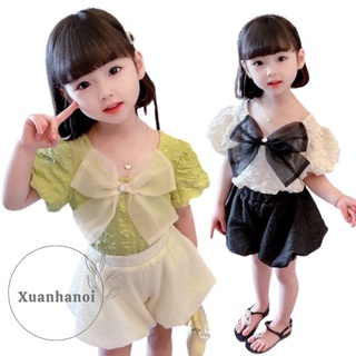 Bộ đồ bé gái áo nơ và quần bồng 2 lớp XHN1003