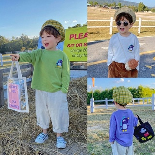 Áo Thun 100% Cotton Tay Dài In Họa Tiết Hoạt Hình Phong Cách Hàn Quốc Cho Bé