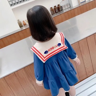 Đầm Bé Gái Tay Dài Cổ Hải Quân Phong Cách Thời Trang Nhật Hàn Mới 2022