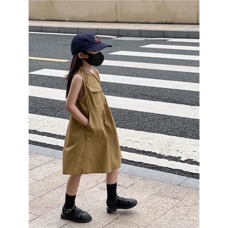 Đầm Kaki Sát Nách Màu Trơn Phong Cách Nhật Hàn Thời Trang Mùa Hè Mới 2022 Cho Bé Gái