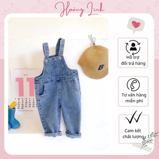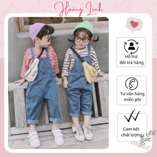 Quần yếm jeans hai dây dáng dài cho bé gái bé trai đáp da form rộng phong cách Hàn Quốc