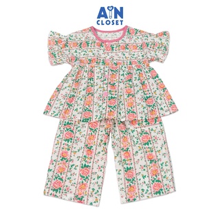 Bộ quần áo dài bé gái họa tiết Cúc trắng xô sợi tre - AICDBGM2PELH - AIN Closet