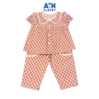 Bộ quần dài áo tay lỡ bé gái họa tiết Hoa cổ nơ cam xô muslin AICDBGE6FYEP AIN Closet