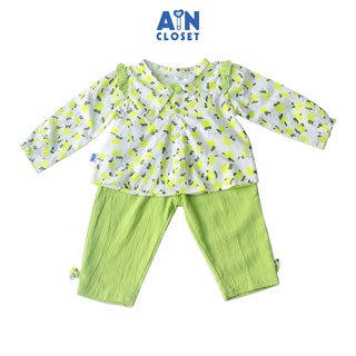 Bộ quần áo dài bé gái Họa tiết Hoa nhài xanh cốm cotton - AICDBGRHLYF3 - AIN Closet