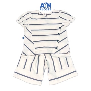 Bộ quần áo lửng bé gái họa tiết Sọc xám linen cotton - AICDBGO2C8RB - AIN Closet
