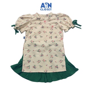 Bộ áo váy ngắn bé gái họa tiết Hoa hồng vàng Golden cotton dệt AICDBGSQBOYT AIN Closet