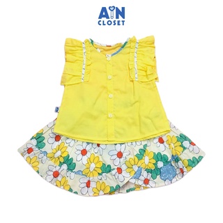 Bộ áo váy ngắn bé gái họa tiết Hoa vàng cotton - AICDBGJJ6HWD - AIN Closet