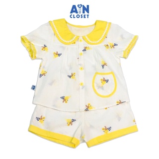 Bộ quần áo ngắn bé gái họa tiết Hoa Lan vàng cổ sen cotton boi AICDBGAMDRSA AIN Closet
