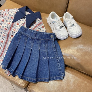 Bộ Áo Sơ Mi Denim Tay Ngắn Phối Chân Váy Denim Dáng Rộng Thời Trang Mùa Hè Xinh Xắn Cho Bé Trai Và Gái