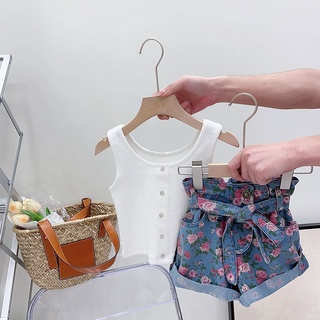 Set Đồ Mùa Hè 5 Món Gồm Áo Ba Lỗ Và Quần Ngắn Denim Thoáng Khí Hợp Thời Trang Cho Bé Gái