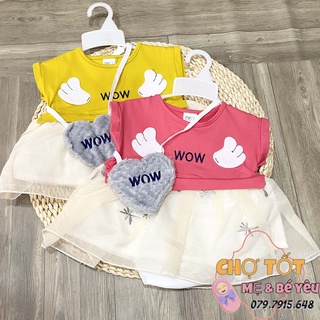Đầm thun giả yếm phối voan mềm kèm túi bé gái (4-10kg)