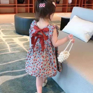 Đầm Công Chúa Không Tay In Hoa Đính Nơ Thời Trang Mùa Hè Cho Bé Gái 0-3 Tuổi