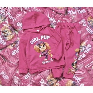Set bộ nỉ da cá có mũ chó đội trưởng cho bé gái màu hồng