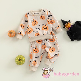 Set Đồ Halloween 2 Món Gồm Áo Thun Tay Dài In Họa Tiết Bí Ngô + Quần Cho Bé 0-3 Tuổi