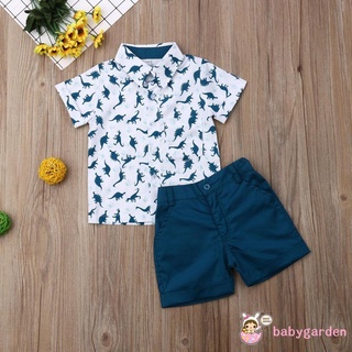 Bộ Áo Thun Tay Ngắn Cổ Bẻ In Hình Khủng Long + Quần Ngắn Màu Trơn Thời Trang Mùa Hè Cho Bé Trai 1-6 Tuổi
