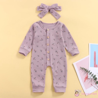 Bộ Áo Liền Quần Tay Dài Cổ Tròn In Hoa + Băng Đô Cài Tóc Thời Trang Mùa Thu Cho Bé Gái 0-18 Tháng Tuổi