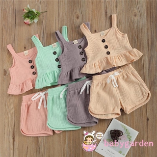 Bộ Áo Trễ Vai Màu Trơn + Quần Short Cho Bé Gái