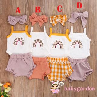 Bộ Áo Tank Top Cổ Tròn Không Tay Màu Trơn + Quần Sooc In Hoa + Băng Đô Cài Tóc Thời Trang Cho Bé Gái 0-18 Tháng Tuổi