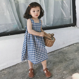 Đầm hai dây dáng rộng họa tiết sọc caro thời trang mùa hè cho bé gái 1-6 tuổi