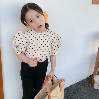 Áo Kiểu Tay Phồng Hở Lưng Chấm Bi Thời Trang Mùa Hè Hàn Quốc Se7en Dành Cho Bé Gái