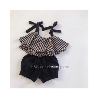 Bộ bé gái 2 dây caro bánh bèo mùa hè cho bé từ 0-6 tuổi