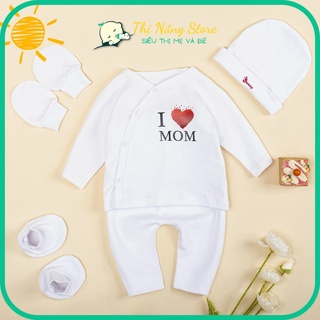 Bộ quần áo tay dài sơ sinh 100% cotton bao gồm nón vớ bao tay chân, Quần sơ sinh lưng cao giữ ấm bụng cho bé Bé Bơ store
