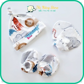 Mũ, Bao tay chân sơ sinh cotton co dãn cho bé từ 0 đến 3 tháng mềm mịn, thoáng không bí hơi Thị Nắng Store